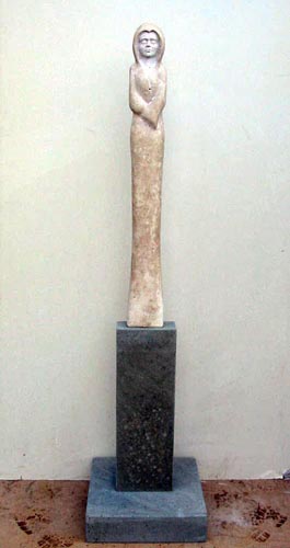 Silent Watcher II Travertine with Tenino Sandstone Base 70" high 450 lbs prices available upon request